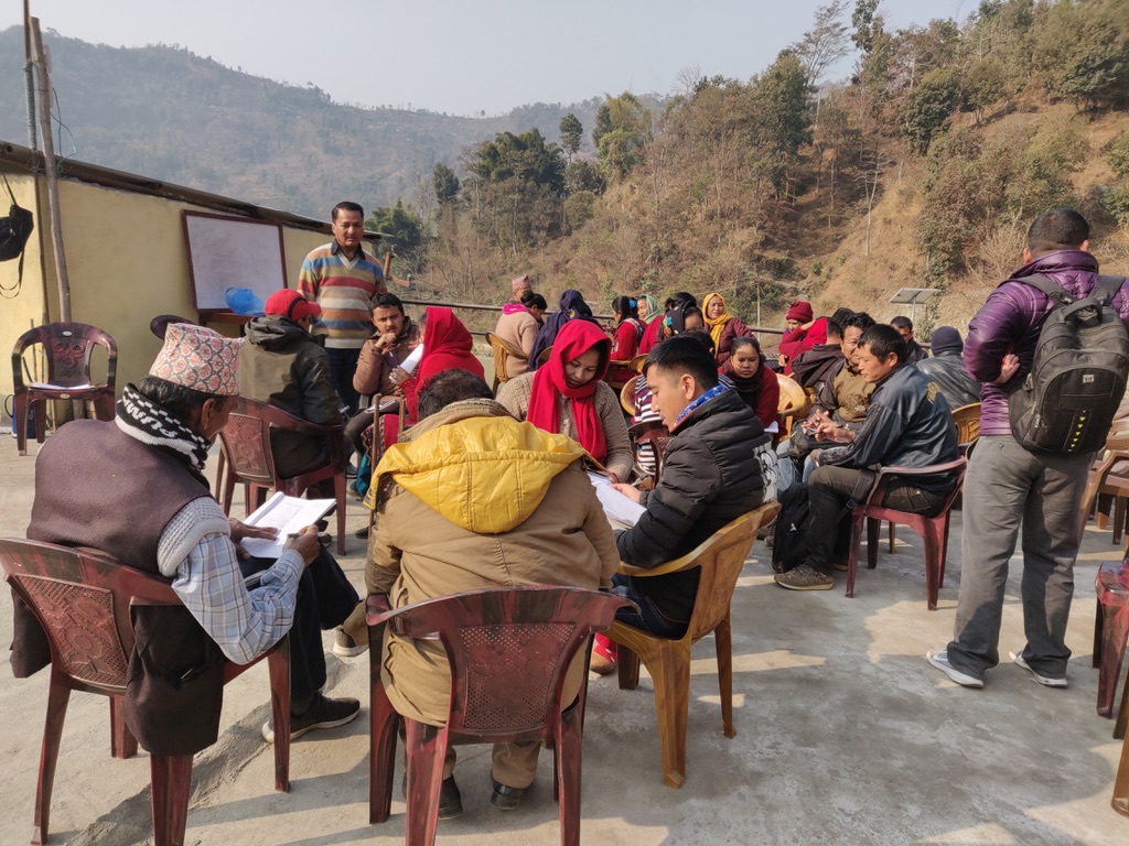 Sahadev Mahat was Questing with a group of leaders and staff of a remote village in Nepal. He described the photo he sent, “We usually don’t have chairs because they are simply not available. Today we were lucky, even without tables”